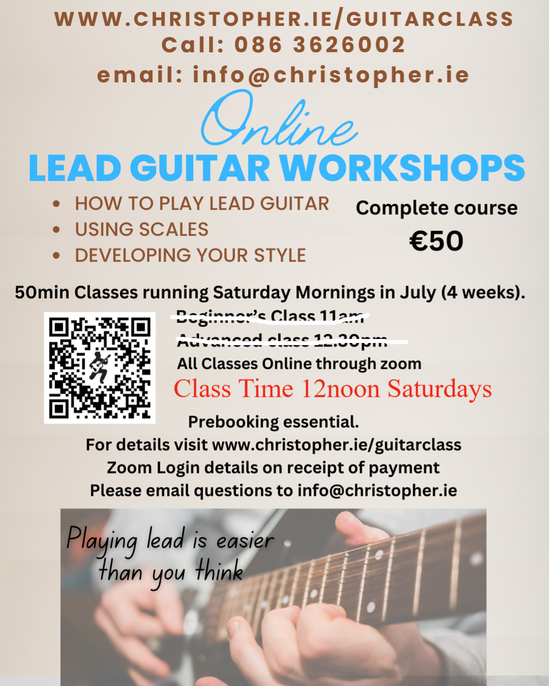 - These classes are being hosted online from Ireland, but we are accepting students from anywhere in the world. Times given are local to Ireland, GMT. If you need to check about your local time, or currency to pay, then please get in touch before hand info@christopher.ie